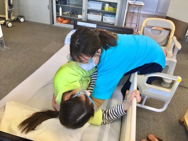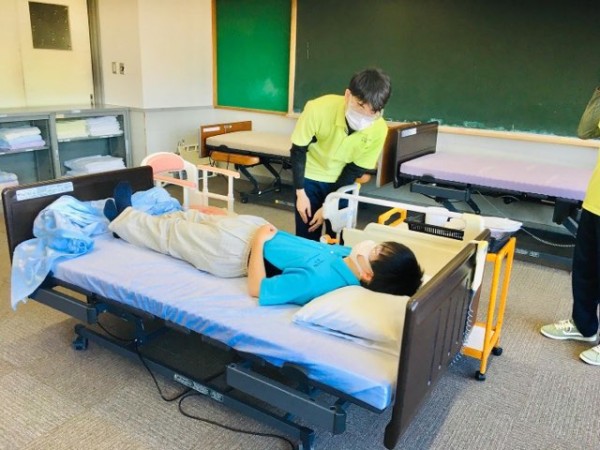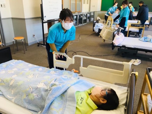 実践は2人ペアとなり、利用者役と介護者役の両方を経験します。