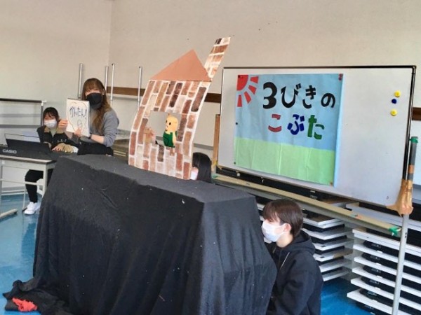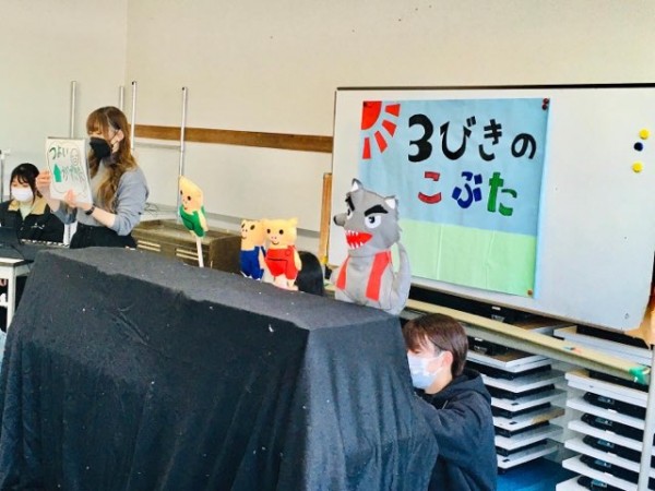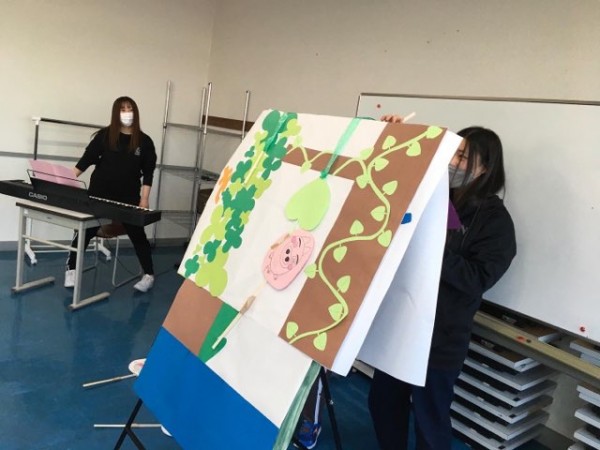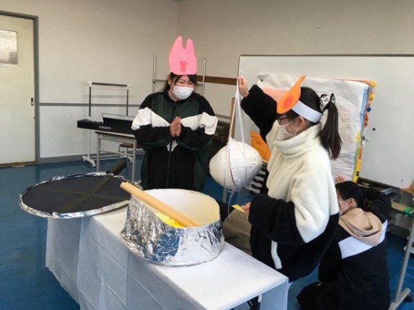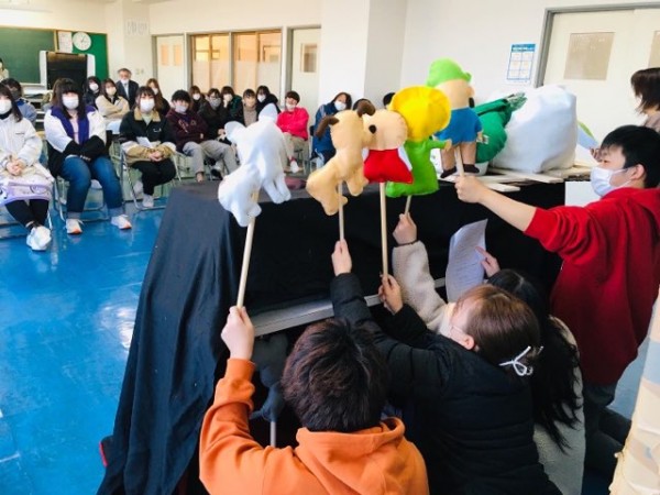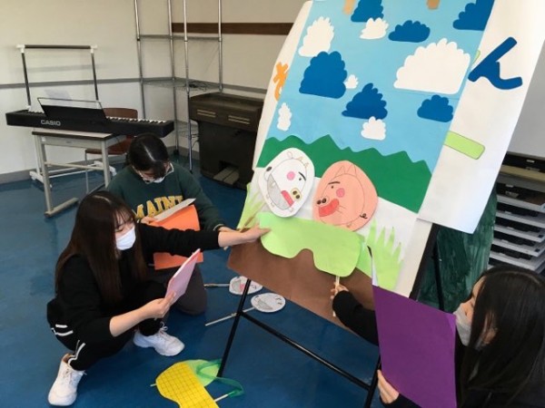 こども環境科1・2年生は、2月に学びの集大成として、子どもたちの前で人形劇や参加型劇遊びの実践発表を行ないます。