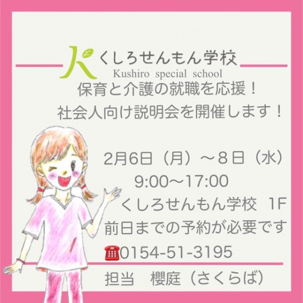 説明会期間以外をご希望方もご一報ください。電話予約→ 0154513195 櫻庭(さくらば)まで。お待ちしております。