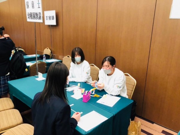 先週、公益社団法人 北海道私立専修学校各種学校連合会が主催した進路相談会が開催されました。この日はたくさんの生徒さんたちがくしろせんもん学校のブースに着席し、学校説明や入試についての説明を受けました。また、体験ブースでは短時間ですが、それぞれのお仕事体験を経験し、その仕事についてさらに興味を持った方もいたのではないでしょうか。