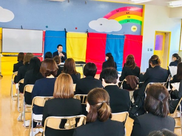 4月1日から令和5年度がスタートしました。この日、ほっかいどう学院・釧路学園の法人の全教職員が、わかばフレンドようちえんのリズム室に集合しました。理事長先生から令和5年度の『発展計画』について細やかな説明を受け、学院・学園の発展のために共に協力しあい頑張っていくための決意を新たにしました。