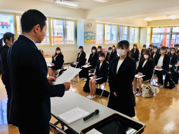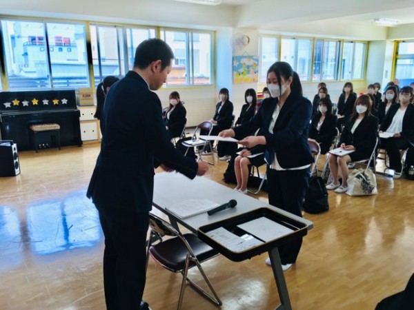 辞令交付。今年度の新人教員となった卒業生にも、辞令が交付されました。