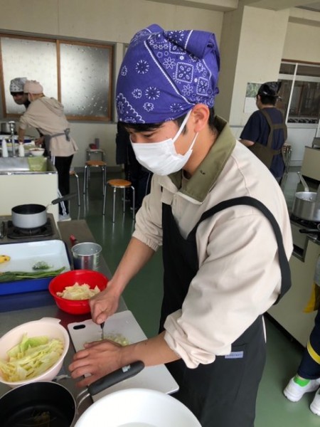 1講目の授業では、食生活の基本知識について学びました。2講目の先週の授業からは調理実習がスタートしました。調理の基本について、食べやすい食事について、春の行事食、高齢者に喜ばれる食事と、段階を追って高齢者の食生活について学んでゆきます。
