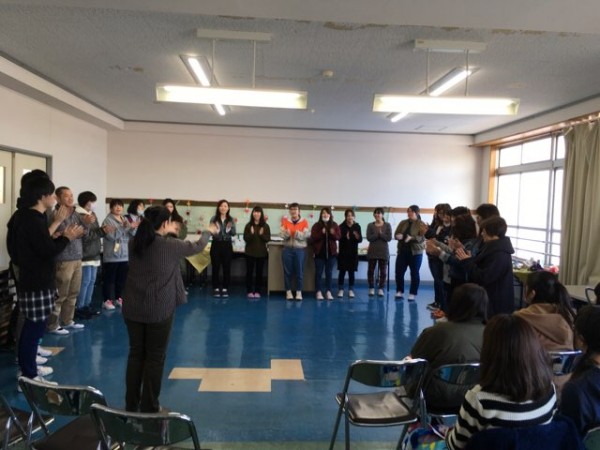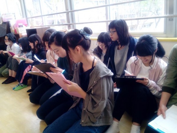 学生は6月の保育園実習前に、系列のわかばフレンドようちえんで行なった横川先生の『わらべ歌の実践』を見学しました。