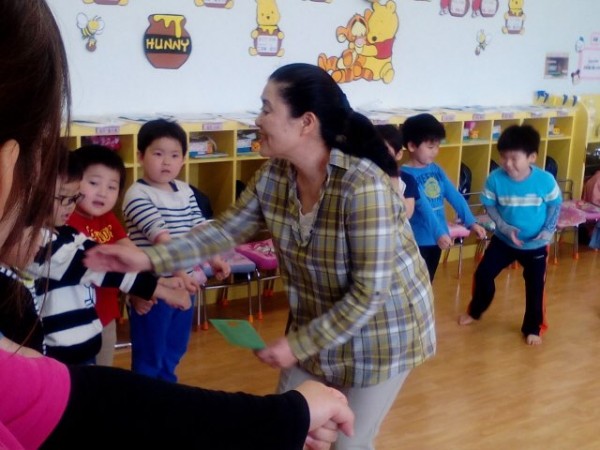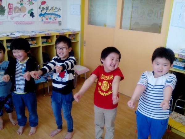 楽しそうにわらべ歌に取り組む園児たち。