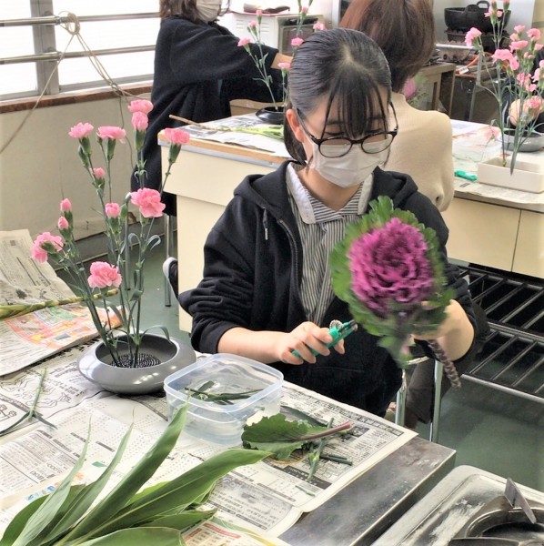 介護環境科1年生 「生け花」の様子をお届けします♩