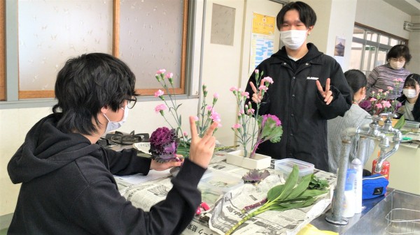 生け花は今日が初めて!の学生が大半でしたが
