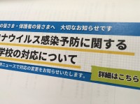 感染拡大防止策へのご協力のお願い全国的に変異株(オミクロン型)による感染が増加している中、感染拡大防止策を徹底することが求められます。本校では、学生の皆さんへ向けたお手紙を作成し、再度、徹底した感...