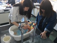 こどもの保健の時間に沐浴演習を行ったこども環境科2年生。この日は担当講師長谷先生の7ヶ月の赤ちゃんも参加した実体験演習となり、計測方法の他、衣服の着脱やこどもの抱き方といった実技も習得しました。沐浴...