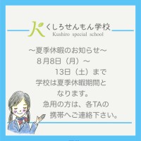 〜夏季休暇のお知らせ〜8月8日(月)〜13日(土)まで、学校は夏季休暇期間となります。急用の方は、各TAの携帯へご連絡ください。夏季休暇でリフレッシュし、また皆さまに学校の最新情報をお届けして参ります...